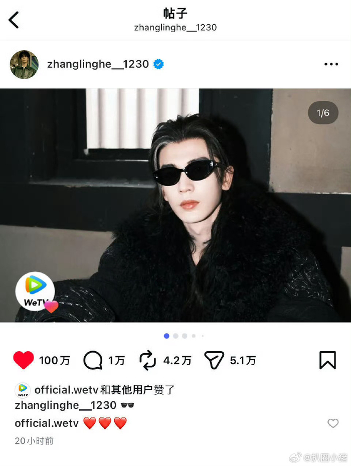 张凌赫最新的ins20小时就破百万了!真正的全球大爆