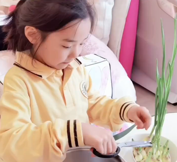 董璇很喜欢在社交平台分享女儿酒窝成长日常,前几日,她还晒出小酒窝下厨画面。画面中,6岁的小酒窝使用儿童专用厨具做炒鸡蛋,而炒鸡蛋用的蒜苗也是酒窝自己种的,虽说在她下厨过程中董璇有陪伴在旁,不过,大部分工序都是小酒窝自己完成,动作熟练麻利,长大后肯定和妈妈一样是一个很贤惠能干的人。