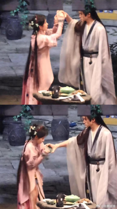张云龙183cm的高大体格与鞠婧祎159cm的娇小身形形成25cm的天然落差。剧中路透呈现的“公主抱”画面、师尊将徒弟“圈在领地”的低语场景,以及张云龙宽肩对鞠婧祎的笼罩式站位,均被观众解读为“狼对兔的掌控与守护”,这种强烈的视觉符号直接呼应流行文化中的“狼兔文学”设定。