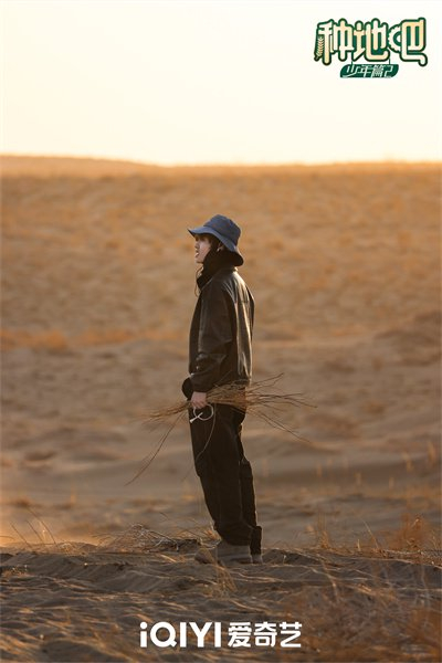 这天,除蒋敦豪因伤缺席外,十个勤天甘肃汇合,紧锣密鼓开会商定了当日任务。饭后,成员们正式出发,每个人帽子、口罩、墨镜全副武装,化身“西北群狼”。到了沙漠,何浩楠主动学开打坑机,解锁“车神”沙漠版。打坑、种苗分组进行,成员们逐渐上手,陈少熙和卓沅还从梭梭树和沙漠中悟出“合适最重要”的人生哲理。结束了一天的劳作,大家反思工作效率没有达到预期,于是尝试向村民借调打坑车,还开玩笑让李昊一人负责给大家供应树苗,李昊听完开始随地大小演,成员们的沙漠生活也同样妙趣横生。虽然人在甘肃,卓沅一直心系大棚的郁金香,晚上还不忘打电话询问郁金香生长状况,水培、植树两手抓。