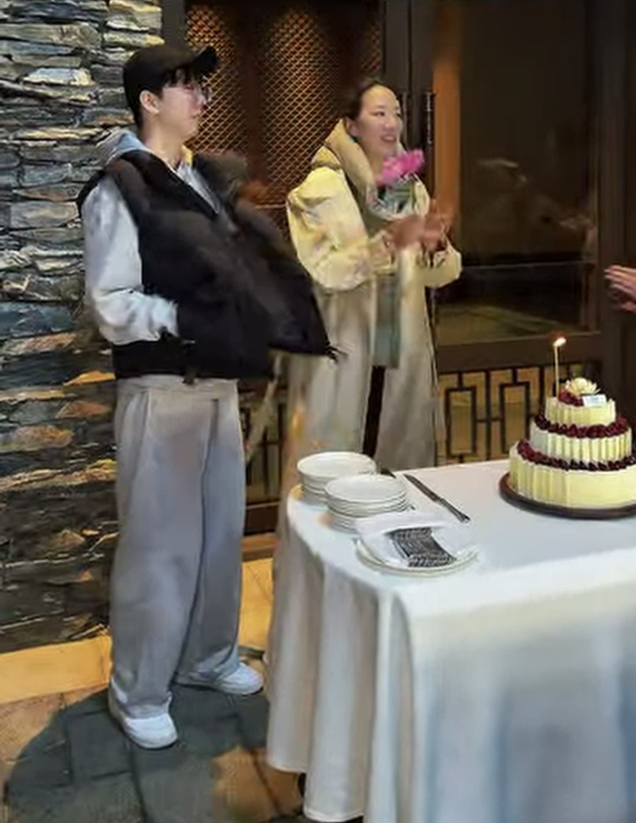 在场几乎所有人都站了起来为汪诗诗唱生日歌,还顺势从桌子上的鲜花丛中抽了一朵鲜花给汪诗诗。汪诗诗拿着桃红色的花,与儿子一起站在生日蛋糕前,唱歌吹蜡烛笑不拢嘴,之后还对着生日蛋糕许愿。生日蛋糕也是提前准备好的,还是一个三层高,有车厘子装点的蛋糕。汪诗诗感慨万分,虽然45岁的生日还没有正式来临,不过能够在九寨沟庆生,而且还那么突然,这份感动令她记忆深刻。她在事后称,这是一个意想不到的惊喜,在这九寨沟这么美丽的地方,感谢好姐妹杨小娟的安排。
