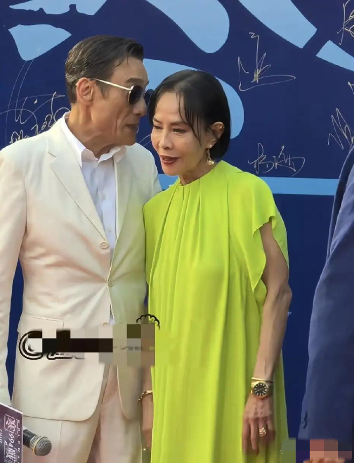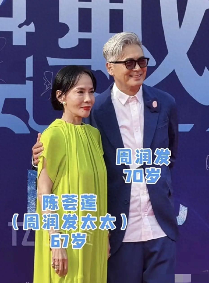 当天的发哥一身笔挺的蓝色西装,搭配墨镜亮相,头发虽已花白,但身姿挺拔、步履稳健,举手投足间气场全开,绅士儒雅的气质丝毫未减。发嫂陈荟莲则以一身简约装扮温柔相伴,身形偏瘦但精神矍铄,全程挽着发哥的手臂,两人在红毯上频繁向围观影迷挥手打招呼,合影时更是尽显默契,现场气氛温馨又热烈。不少网友感叹:“这哪像71岁的人?这精气神,说50岁我都信。”