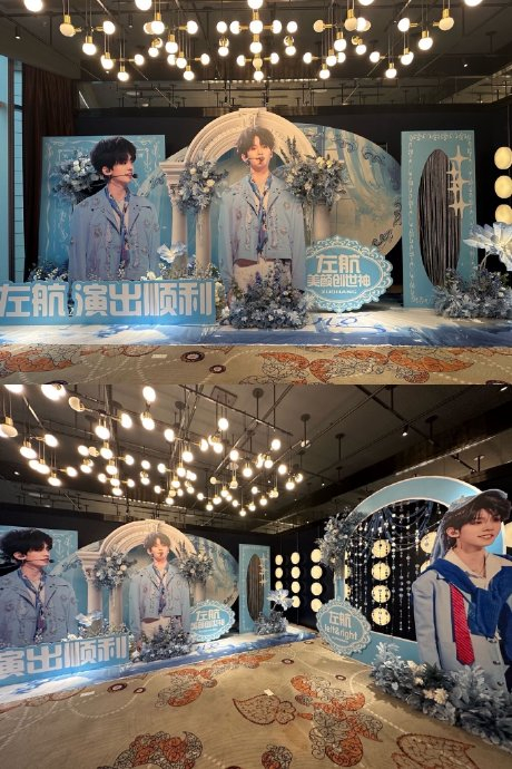 左航多次透露排练强度,例如深夜发文“要继续彩排了,大家明天见”,或坦言“记舞蹈动作记闷了”。团队动态显示他与张泽禹合作双人舞台《Toxic》,而粉丝包店应援、花墙布置的现场图也印证其演出号召力。