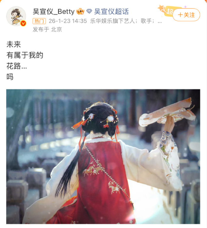 脱离乐华娱乐之后,她曾迷茫过,她说未来会有属于我的花路吗?但短暂的emo之后她说,我一定会努力努力再努力,争气争气再争气。