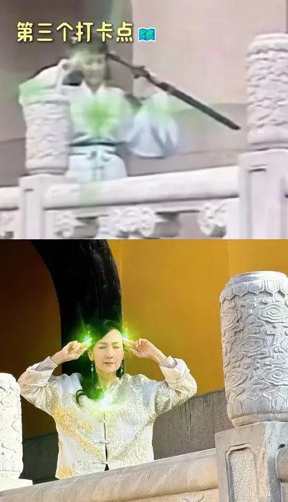 日前,新白娘子传奇剧组在镇江开演唱会,陈美琪在演出结束后,重游当地的金山寺,在多个当年的拍摄位置,再次摆出昔日的Pose打卡,跟当年的剧照对比,外貌上相差不大。
