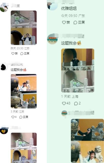很多网友除了在评论区留言夸小青好美之外,还晒出自己模仿陈美琪打卡的照片。