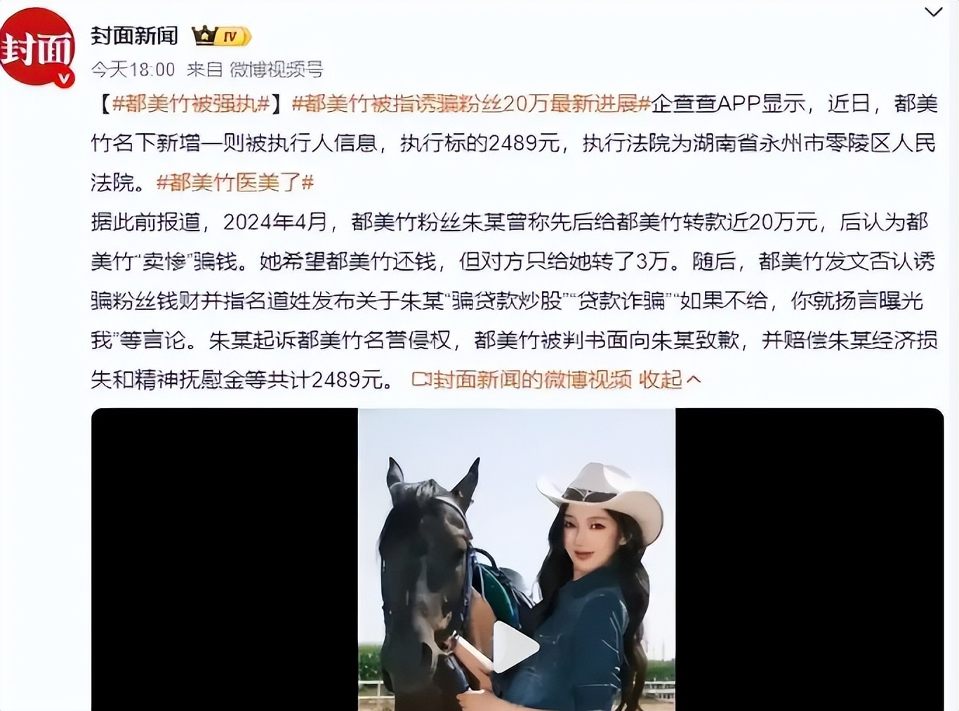 4月17日,都美竹被正式列为被执行人,执行标的只有2489元。