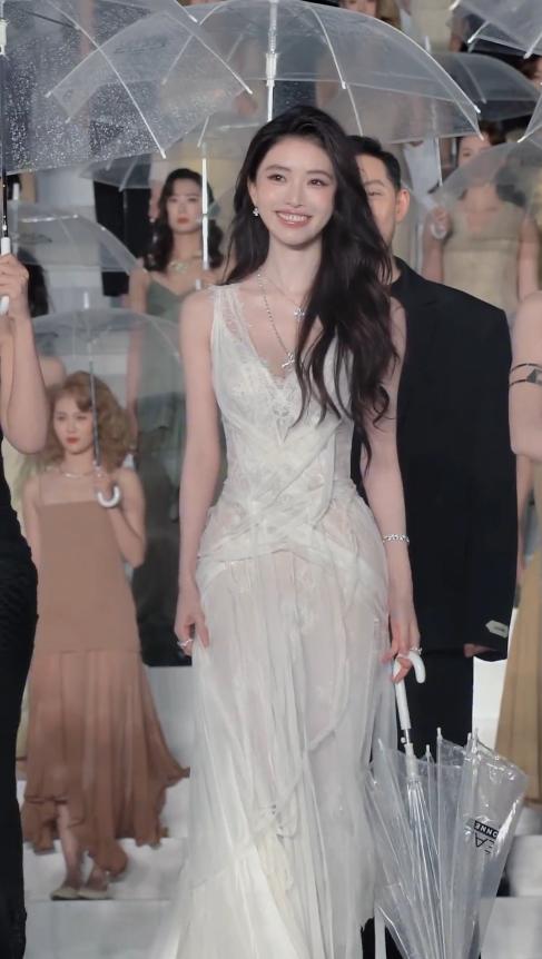明明穿的是优雅的白色礼裙,却被她走出了刻意做作的感觉。