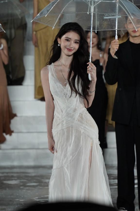 神情清冷又温柔,被网友称为当晚最有记忆点的造型。