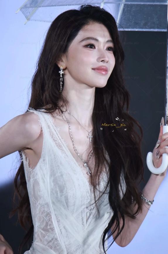 就说前段时间的芭莎之夜,她一身“战损天使”造型,纯白礼裙简约又有设计感,淡淡的伤痕妆效自带故事感。