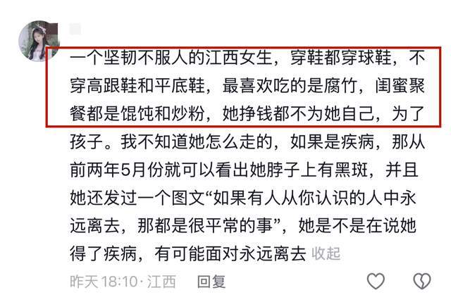 从其过往分享的动态中可以发现,她在去世之前仍然是单身且并没有生育,工作再好,意义何在呢?