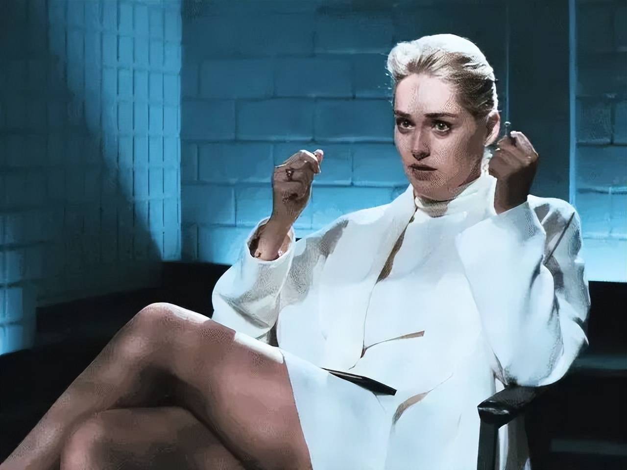 从此,莎朗・斯通凭借白裙、金发、冰烟,成为90年代性感女神的代名词。