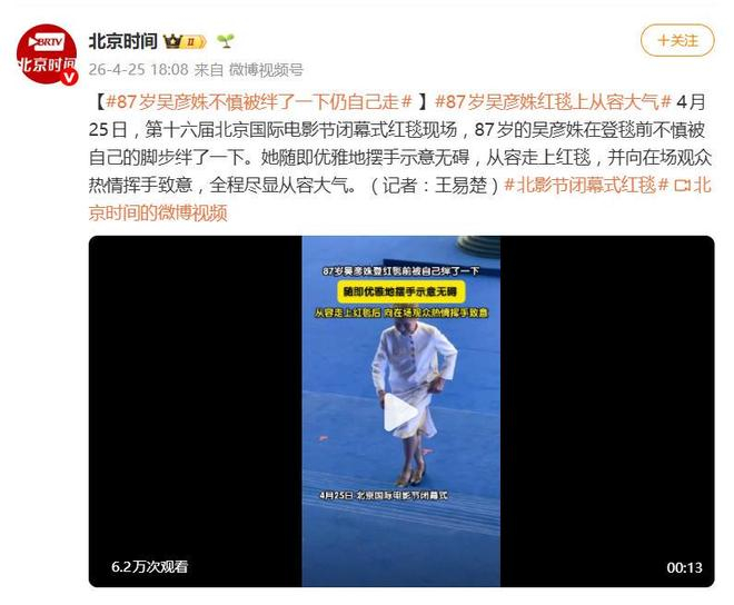 1. 吴彦姝的从容,简直是“老人儿”界的高级感! ,2. 87岁的她,红毯上的优雅,直接让人忘记了自己的年龄! ,3. 银发飘飘,步履从容,仿佛“白发仙子”不认输! ,4. 这么多年后,她的从容,依然是“岁月巨人”中的佼佼者! ,5. 优雅从容,红毯上的“老人儿”,也美得让人心动! ,6. 她的微笑,像是用岁月浸润过的宝石,闪耀动人! ,7. 87岁的她,红毯上的表现,直接超越了“滤镜”的存在感! ,8. 她的背影,简直是“岁月沉淀”的代名词,别说年轻人! ,9. 吴彦姝的从容,仿佛“岁月从不败美人”的最佳注脚! ,10. 红毯上的她,优雅大方,连绊一跤都成了“高级感”瞬间!1. 吴彦姝的优雅,直接让其他明星看起来像个不速之客! ,昵称:仙女派,2. 87岁的她,红毯绊了一下,整个人都没事儿一回,这叫什么?这叫风风火火! ,昵称:风风火火,3. 看红毯上这位奶奶,白发飘飘的,倒是让那些“年轻”明星都显得不起眼了。 ,昵称:银发仙子,4. 皱纹是时光馈赠,白发是老年才有的勋章,吴彦姝一身就是岁月的代言人! ,昵称:岁月之美,5. 有点感动,看老人家那么从容,仿佛这辈子都没什么风风雨雨的。 ,昵称:岁月从不败美人,6. 87岁的她,红毯上的优雅,直接让人怀疑,到底是不是真的87岁? ,昵称:老才子,7. 这位奶奶的举止,简直比很多年轻人都优雅,比很多明星都有魅力! ,昵称:国家宝藏,8. 看完吴彦姝的红毯,我突然明白了什么叫“年轻不少”。 ,昵称:永远年轻,9. 她的风范,直接让人忘记了其他明星的存在,这才是真正的高级感! ,昵称:优雅之主,10. 87岁的她,红毯绊了一下,依然从容,其实这才是真正的风范。 ,昵称:风水云开