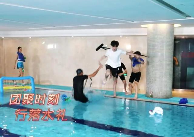 大家看到陈立农回归时,也是激动得不得了。看看这王大爷激动的小手,一只手拿着饮料,一只手不知何处安放了。接着,在男生的起哄下,大家伙把陈立农一起往泳池水里扔。给陈立农来了一个赤裸裸地落水礼。