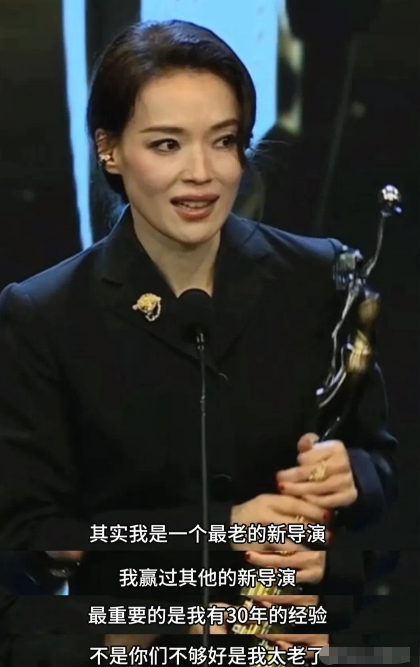 当晚第一个引发全场关注的奖项,是新晋导演奖。舒淇凭着导演处女作《女孩》拿下了这个奖项,前几天刚过完 50 岁生日的她,站在台上幽默自嘲: