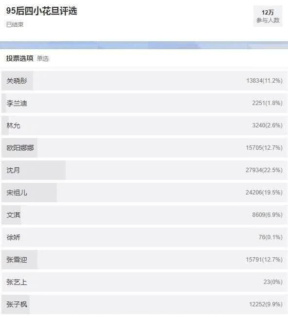 那段时间,沈月在剧中的穿着几乎都被网友嘲笑过,本以为她的人气不高,但没想到的是,在昨日(12月21日),12万人参与的95后四小花旦的投票评选中,沈月获得第一,票数遥遥领先关晓彤、张雪迎等当红女星。这个结果,实在令人意外,网友也表示沈月大概是被黑红的。
