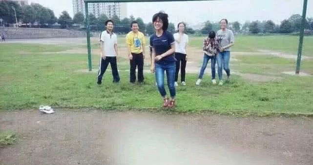 而这张照片中,沈月和同学们在操场上,大家看着她跳沙坑时嬉笑玩闹的样子,令人怀恋起学生时期上体育课时的美好。沈月的表情,也是十分接地气了。